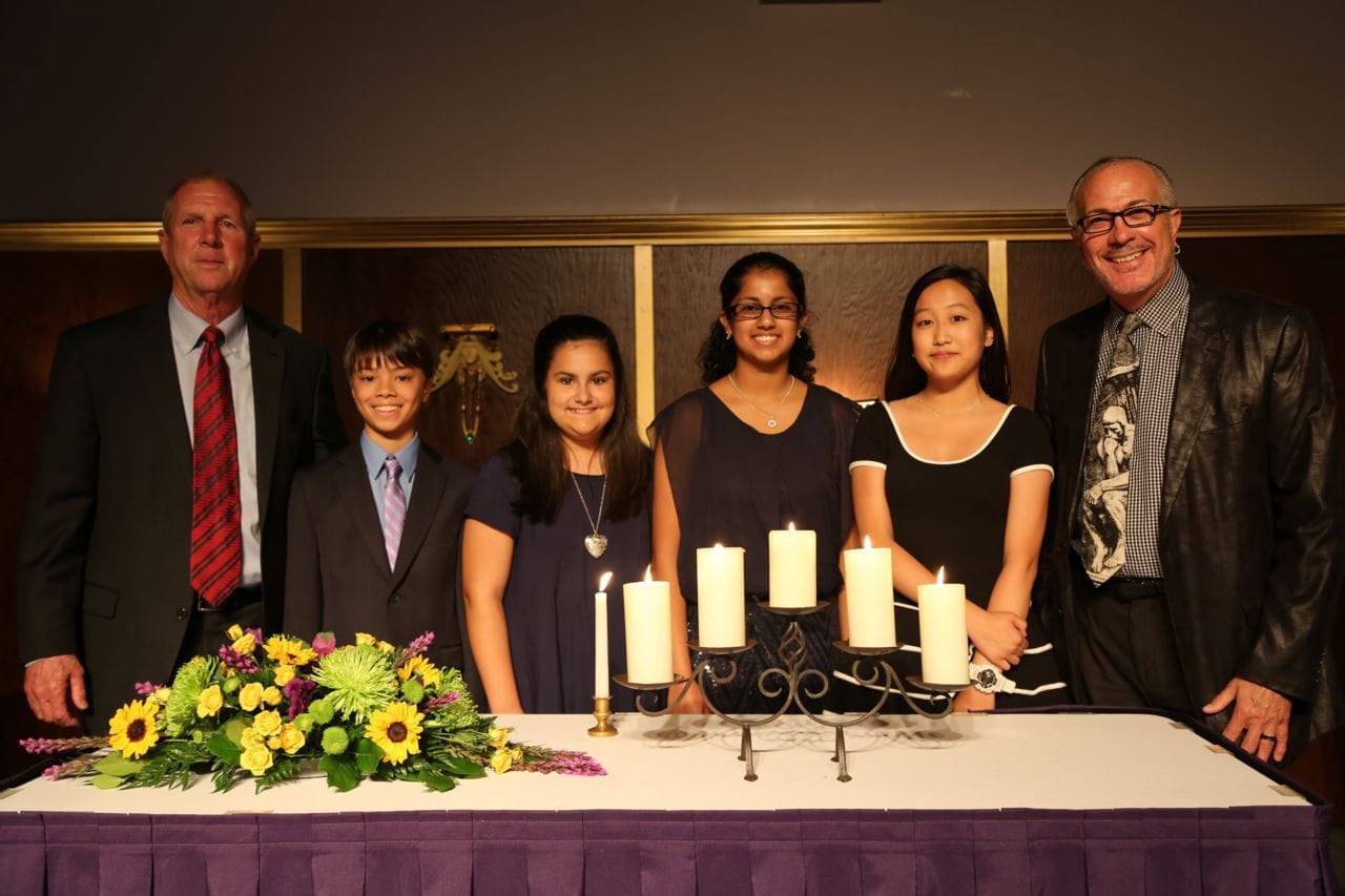 Builders Club officers apply for their positions and are elected by their peers. The officers for the 2014-2015 school year are Ejun Kim (8th grade, President), Carder del Rosario (7th grade, Vice-President), Divya Kumaran (8th grade, Secretary), and Nicole Hisey (7th grade, Treasurer). At the induction ceremony for 2014-2015 members, each newly elected officer lit a candle and recited one of the principles of the Builders Club. Mr. Miller led the members in taking the Builders Club pledge to “commit to serving others in need.”